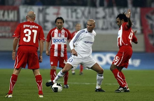 Zinédine Zidane, Ronaldo et leur amis de la sélection d'anciennes vedettes mondiales du football ont joué un match de charité en faveur de la lutte contre la faim en grèce contre l'Olympiakos. Regar...