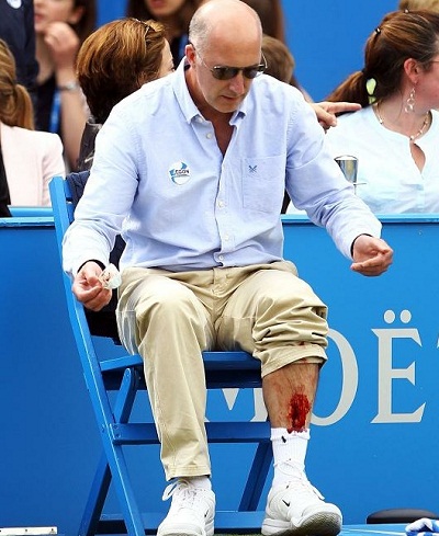 L’Argentin David Nalbandian a blessé dimanche dernier un juge de ligne en donnant un coup de pied dans sa chaise lors de la finale du tournoi du Queen’s. Il a été disqualifié, alors qu’il avait remporté le premier set 7-6 (7/3) et était mené dans le deuxième (4-3), et son adversaire le Croate Marin Cilic a été déclaré vainqueur.