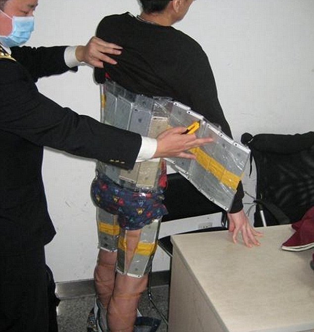 Un chinois arrêté à la douane avec 94 iPhone scotchés sur son corps (photos)