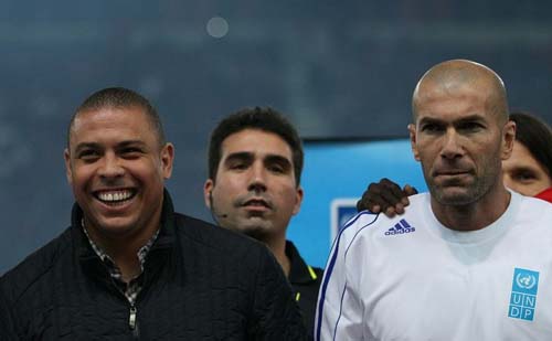 Zinédine Zidane, Ronaldo et leur amis de la sélection d’anciennes vedettes mondiales du football ont joué un match de charité en faveur de la lutte contre la faim en grèce contre l’Olympiakos. Regardez Zizou dans ses oeuvres !